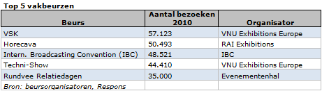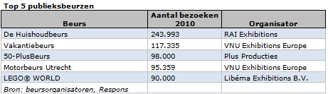 De grootste vak- en publieksbeurzen in 2010 naar aantal bezoeken ziet er als volgt uit: