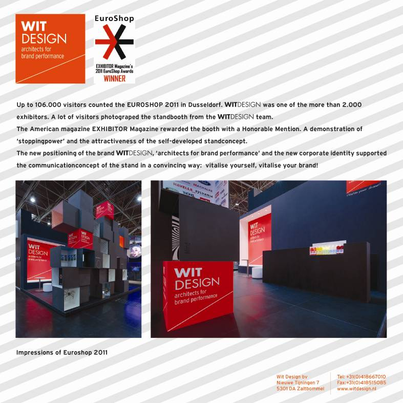 CLC-VECTA lid WITDESIGN uit Zaltbommel was één van de ruim 2000 exposanten tijdens Euroshop 2011 en dat heeft hun ´Honorable Mention´ opgeleverd van het Amerikaanse magazine Exhibitor Magazine;