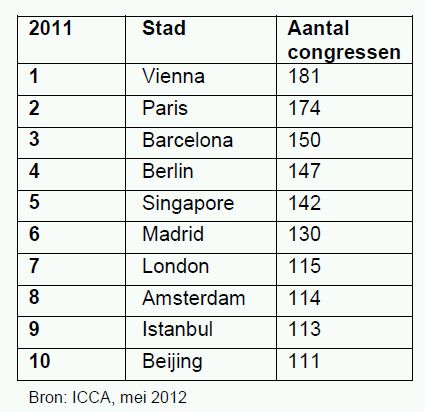 Tabel: 2011 ranglijst internationale congressteden