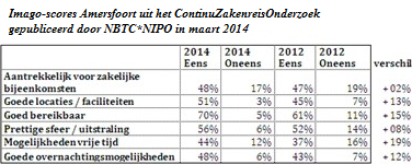 Het NBTC en onderzoeksbureau NIPO onderzoeken jaarlijks het imago van Nederlandse steden onder zakenreizigers. In 2013 scoort het imago van 'Locatie Amersfoort' op alle onderdelen beter dan voorgaande jaren.
