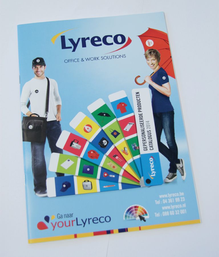 Daarnaast geeft Lyreco met haar 'Give-Aways' catalogus een overzicht van het uitgebreide assortiment van gepersonaliseerde producten. Lyreco biedt een totaal assortiment van promotie- en kantoorartikelen aan die de klant via de webshop helemaal online kan personaliseren met eigen ontwerp.