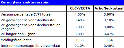 Relaties die werken volgens een volledig eigen-regie-model, ‘Arts in Bedrijf’ en ‘Arts op afroep’ zijn niet meegenomen in de berekening van de verzuimcijfers omdat ArboNed niet beschikt over alle ziekmeldingen van deze klanten.