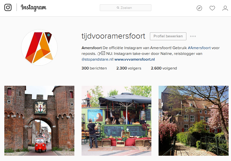 Instagram maakt niet alleen internationaal een groeispurt mee, ook voor 'Tijd voor Amersfoort' hebben de berichten op dit populaire medium de laatste maanden voor veel contactmomenten gezorgd. In het tweede kwartaal gaven 12.500 mensen aan een foto of video leuk te vinden. Volgens citymarketeer Dennis Sille gaat dat de komende tijd alleen maar toenemen: "We zien het bereik op Instagram iedere maand met grote sprongen vooruit gaan. Ik voorspel nu dat onze pagina www.instagram.com/tijdvooramersfoort in het komende kwartaal 30.000 tot 40.000 likes oplevert." Citymarketing Amersfoort experimenteert momenteel met een Instagram take-over door Naline Roodbeen van de populaire blog 'Stop and Stare'. Zij laat als blogger én als inwoner van Amersfoort zien wat haar mooie plekjes zijn.