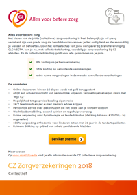 Net als voorgaande jaren kunnen jij en je collega's ook in 2018 via CLC-VECTA en partner Aon een gunstige collectieve zorgverzekering afsluiten bij CZ. De collectiviteitskorting bedraagt 8% op de basisverzekering en 15% op de aanvullende verzekeringen. En ook met minder dan 10 werknemers of als ZZP-er kun je er gebruik van maken.