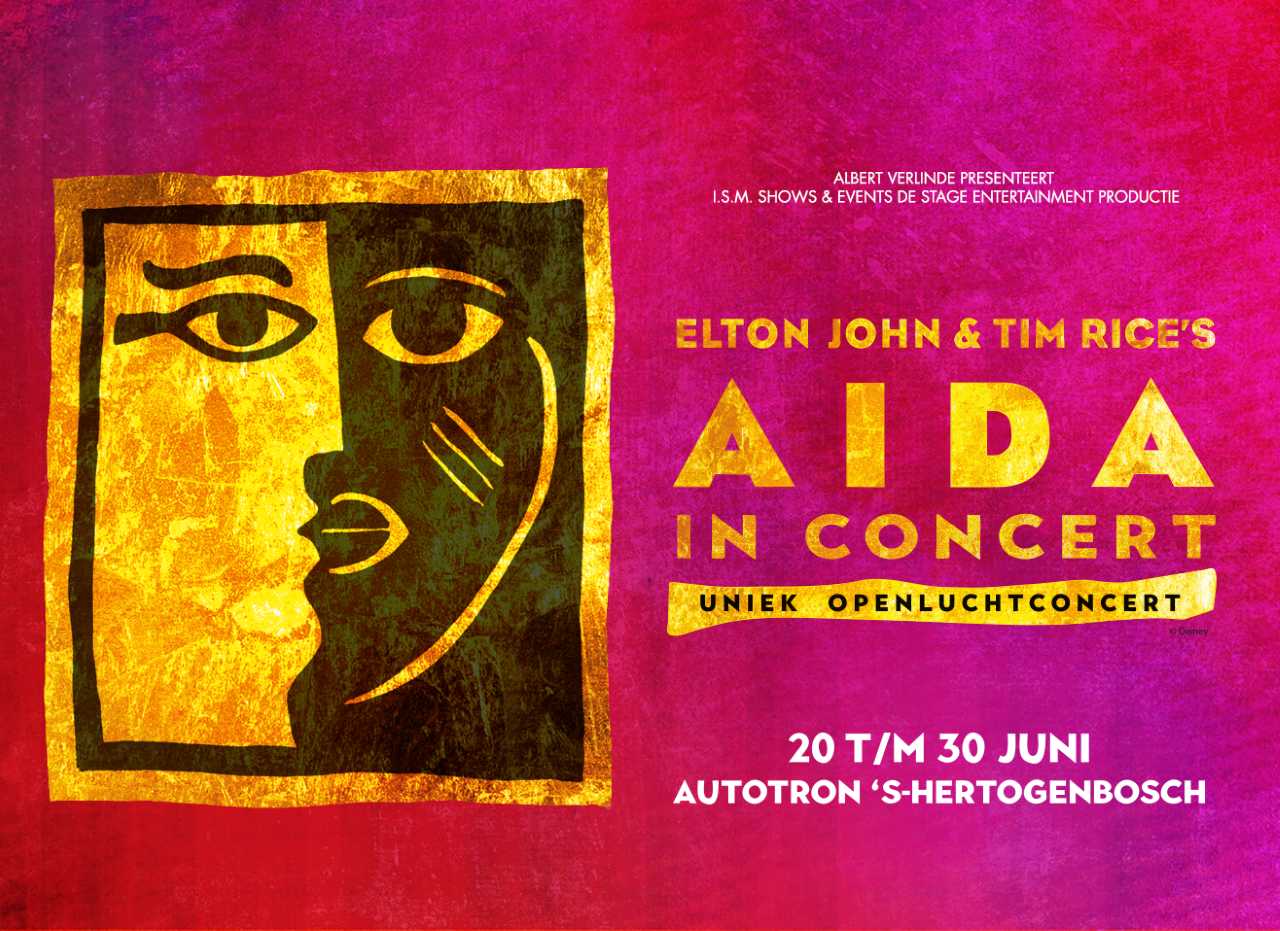 Na twee uitverkochte edities van Elisabeth in Concert in 2017 en 2018 geeft Stage Entertainment deze zomer aan deze traditie een vervolg met Aida in Concert. Op het festivalterrein van Autotron in ’s-Hertogenbosch is deze bijzondere show van 20 tot en met 30 juni slechts zes keer te zien. Net als bij Elisabeth in Concert zullen de bezoekers van het musicalconcert dezelfde festival-sfeer op en rondom het terrein ervaren. Met de fantastische muziek van Elton John, een cast met alleen maar musicalsterren en een 14-koppig orkest, beleeft het publiek een onvergetelijke avond uit in de open lucht.
