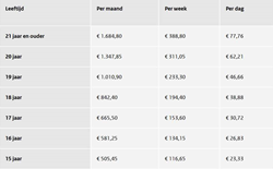 Ook het wettelijk minimumjeugdloon voor werknemers in de leeftijd tussen 15 en 20 jaar is gewijzigd.