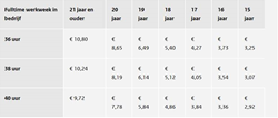 Tabel minimumloon per maand, week en dag (bruto) per 1 januari 2021: