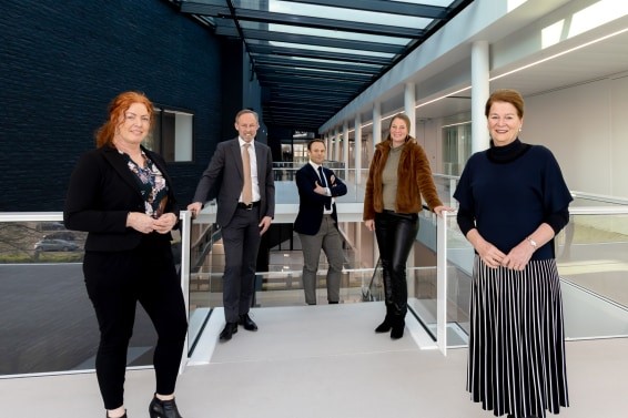 Noortje Sax - Directeur NVvP, Frank Mimpen - Commercial Director MECC Maastricht, Charles Beckers - Sr. Business Development Manager Int. Medical Associations MECC Maastricht, Liesbeth van Gangelen - congresmanager NVvP en Burgemeester Annemarie Penn-te Strake van Maastricht.