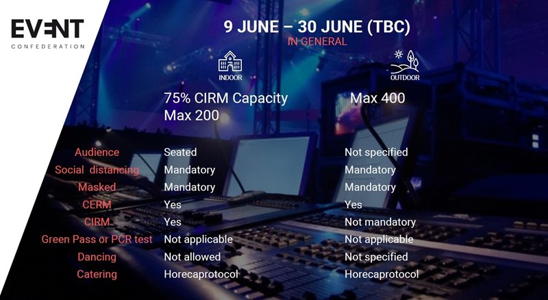 Vorige week werd er in België een nieuw ministerieel besluit gepubliceerd met richtlijnen voor events vanaf 9 juni. Hierin staat wat er vanaf dit moment weer mag in België en onder welke voorwaarden.