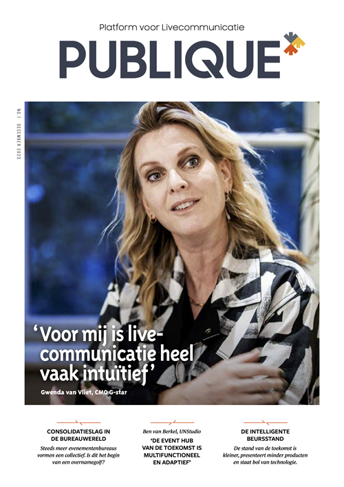 Gwenda van Vliet, CMO van G-Star RAW, vertelt in de eerste print-editie over de samenwerking met dance-event ADE en hoe het denimmerk livecommunicatie inzet om steeds weer nieuwe doelgroepen te bereiken. Ben van Berkel, internationaal bekend om zijn unieke benadering van moderne architectuur en stedenbouw, geeft zijn visie op de ontwikkeling van toekomstbestendige event venues. En Claar van Ittersum, Lead Events bij de Kamer van Koophandel, legt uit hoe haar eventteam de transitie doormaakt van logistieke service-afdeling naar strategisch gesprekspartner.