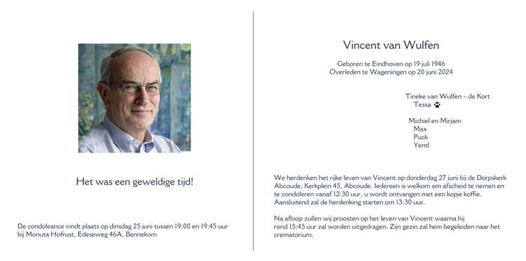 We wensen de familie en dierbaren van Vincent veel sterkte toe in deze verdrietige periode. Een bericht van medeleven namens bestuur, leden en team is inmiddels verstuurd naar de familie.