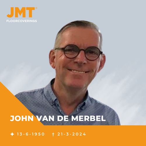 JMT Floorcoverings is gesloten komende woensdag. “Dankbaar voor alles wat hij voor ons heeft betekend zullen we John enorm missen. We vertrouwen op uw begrip dat we deze dag alle rust en tijd nemen om ons verdriet een plaats te geven, en de familie Van de Merbel te steunen bij dit voor hen haast onbevattelijke verlies.”