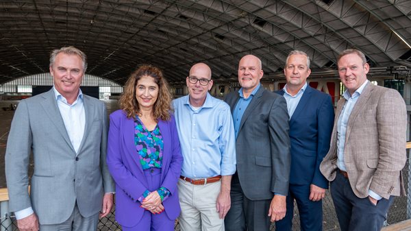 Foto vlnr: Maurits van der Sluis (RAI COO), Jessica Ylstra (Managing Director ACS audiovisual solutions), Marco Noordegraaf (Manager Operations International Projects ACS), Jeroen Jongenelen (International Sales Director Faber), Arjen Kijk in de Vegte (Division Manager Sales Faber) en Bart van der Heijden (Director Events RAI Amsterdam).