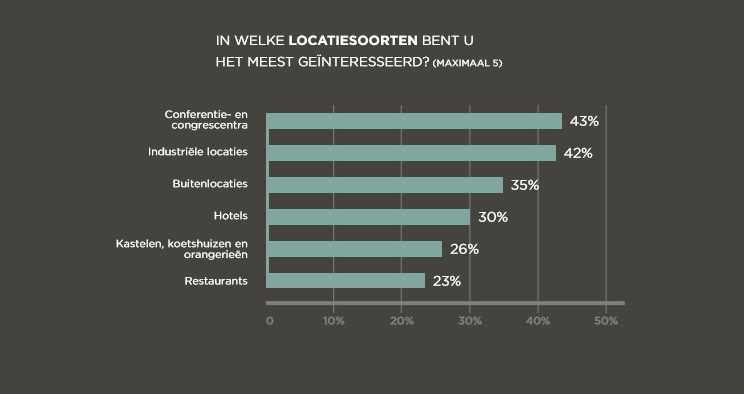 In het Locatieonderzoek delen honderden opdrachtgevers van evenementenlocaties hun ervaringen en behoeften en geven zij inzicht in hun budgetten. Aan het laatste onderzoek werkten 833 respondenten mee, waaronder eventmanagers van toonaangevende multinationals, directeuren en directiesecretaresses van kleine en middelgrote ondernemingen, maar ook overheidsinstellingen en organisatiebureaus. Gezamenlijk organiseerden zij in 2016 22.000 evenementen, met een totaalbudget van 195 miljoen euro.